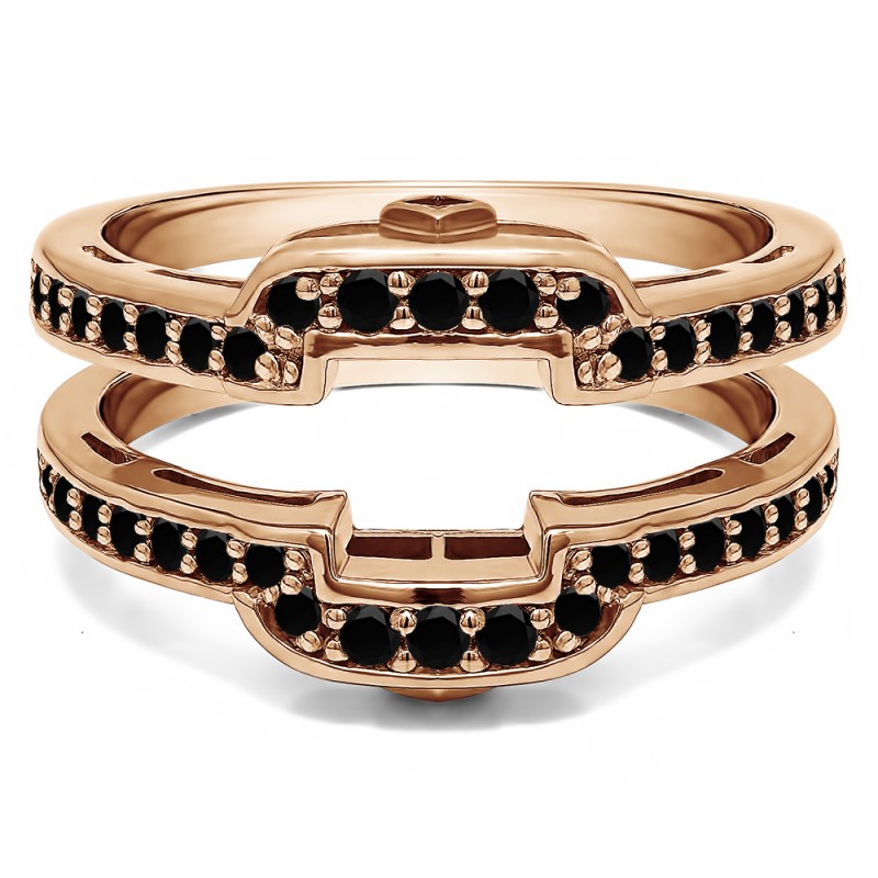 This wedding ring guard has 40 round, channel set stones. Each band measures 2.2 millimeters wide. This ring guard has 0.5 carats total weight. It is made to fit a round solitaire from 0.25 carats to 2, or a princess cut solitaire from 0.5 up to 2 carats.