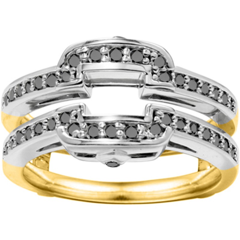 This wedding ring guard has 40 round, channel set stones. Each band measures 2.2 millimeters wide. This ring guard has 0.5 carats total weight. It is made to fit a round solitaire from 0.25 carats to 2, or a princess cut solitaire from 0.5 up to 2 carats.