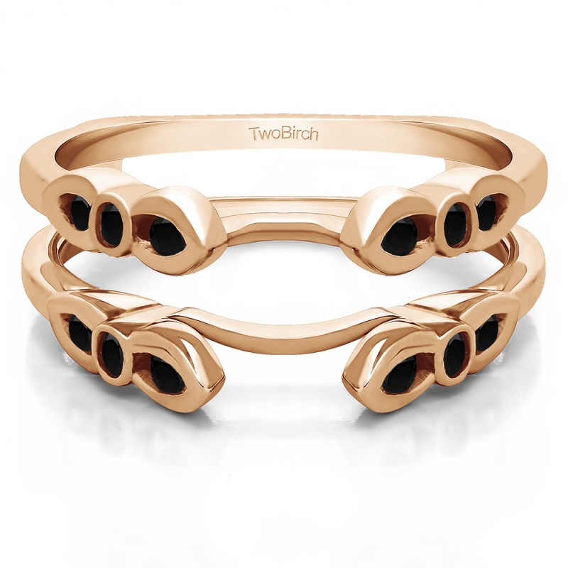 This wedding ring guard has 4 round, prong set stones. Each band measures 1.31 millimeters wide. This ring guard has 0.08 carats total weight. It is made to fit a round solitaire from 0.5 carats to 2, or a princess cut solitaire from 0.5 up to 1, or a marquise solitaire from 0.5 up to 1.5 carats.
