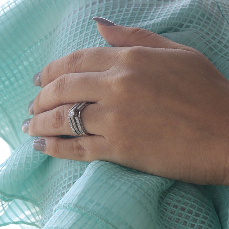 Key Product Features See below for which sizes fit this ring guard if you do not select PerfectFit: Round Stone: 0.75 to 1.5 Carat, Princess Stone:0.5 to 1 Carat, Marquise Stone:1 to 2 Carat Mounted in Traditional Solitaire.