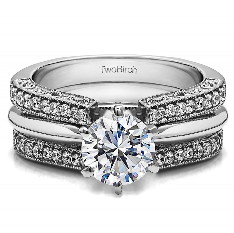 0.29 Ct. Cathedral Ring Guard with Millgrained Edges and Filigree Design