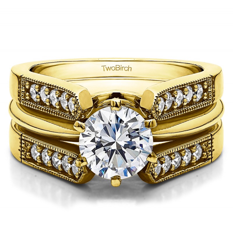 | Key Product Features | See below for which sizes fit this ring guard if you do not select PerfectFit: Round Stone: 0.75 to 2 Carat, Princess Stone:0.75 to 2 Carat, Marquise Stone:1 to 2 Carat Mounted in Traditional Solitaire. |