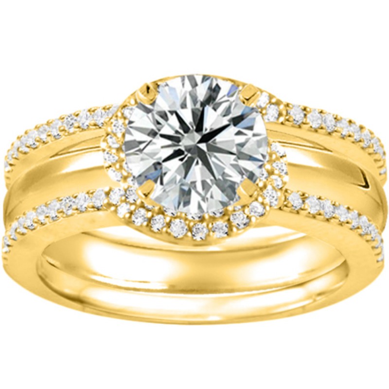 This wedding ring guard has 86 round, prong set stones. Each band measures 2 millimeters wide. This ring guard has 0.44 carats total weight. It is made to fit a round or princess cut solitaire from 0.25 carats to 1.5, or a marquise solitaire from 0.25 up to 0.5 carats.