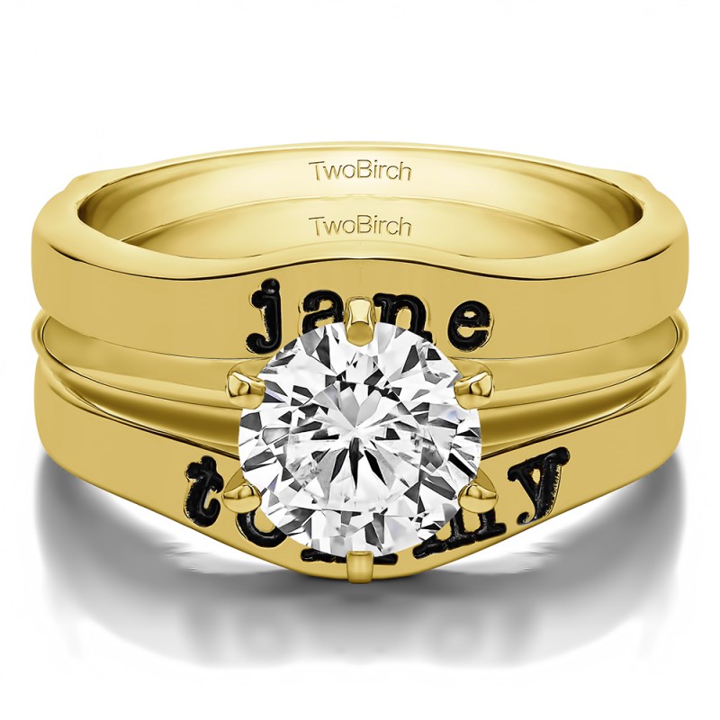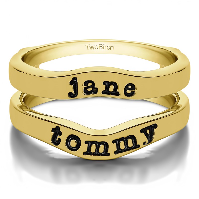 This ring guard has no stones, but has an engraved design on the shank with a cathedral slope. It is made to fit a round solitaire from 0.25 carats to 2, or a princess cut solitaire from 0.5 up to 2.5, or a marquise solitaire from 0.5 up to 1.5 carats.