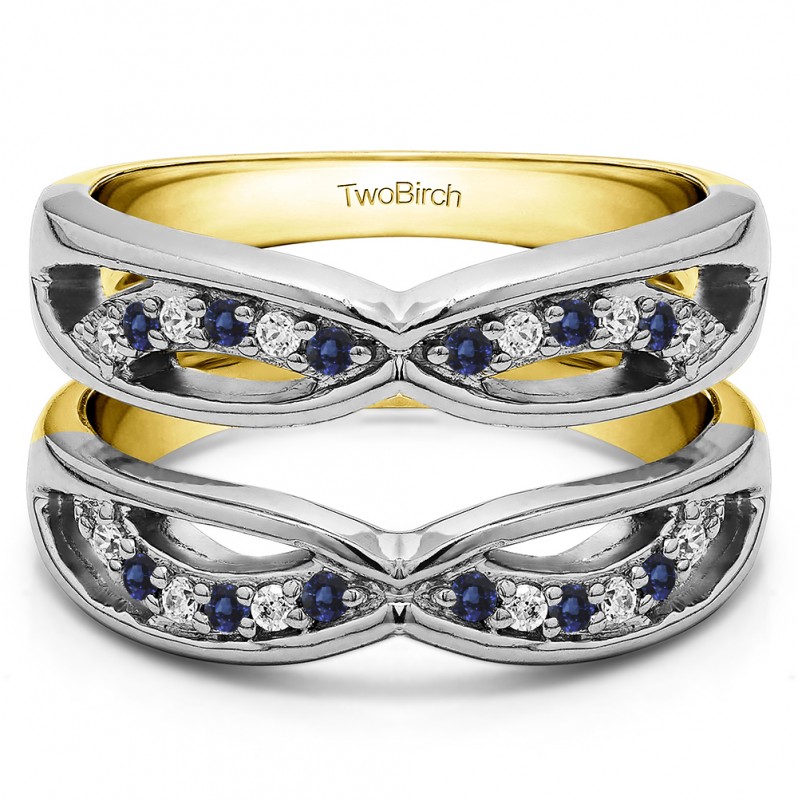This wedding ring guard has 24 round, channel set stones. Each band measures 2.5 millimeters wide. This ring guard has 0.24 carats total weight. It is made to fit a round or princess cut solitaire from 0.25 carats to 2 carats.