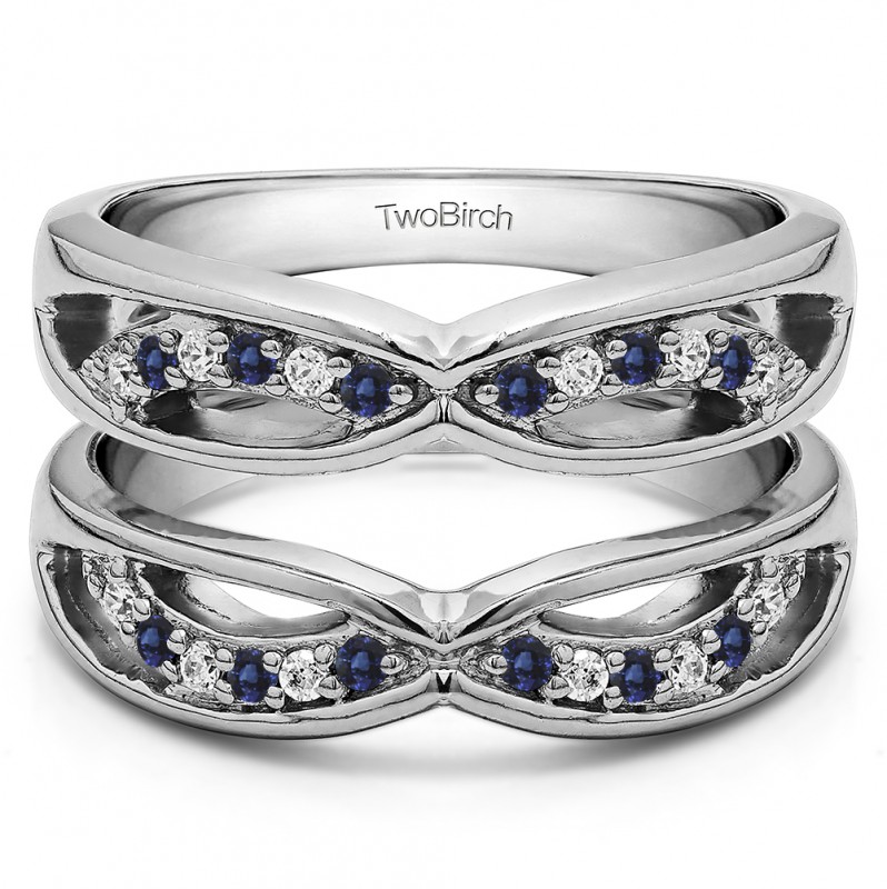 This wedding ring guard has 24 round, channel set stones. Each band measures 2.5 millimeters wide. This ring guard has 0.24 carats total weight. It is made to fit a round or princess cut solitaire from 0.25 carats to 2 carats.