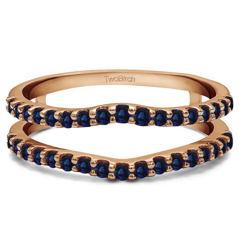 This wedding ring guard has 34 round, prong set stones. Each band measures 1.7 millimeters wide. This ring guard has 0.24 carats total weight. It is made to fit a round solitaire from 0.25 carats to 2, or a princess cut solitaire from 0.25 up to 0.5 carats.