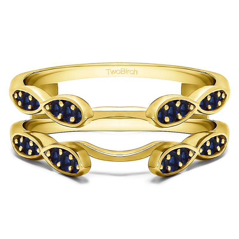 This wedding ring guard has 24 round, channel set stones. Each band measures 2 millimeters wide. This ring guard has 0.32 carats total weight.