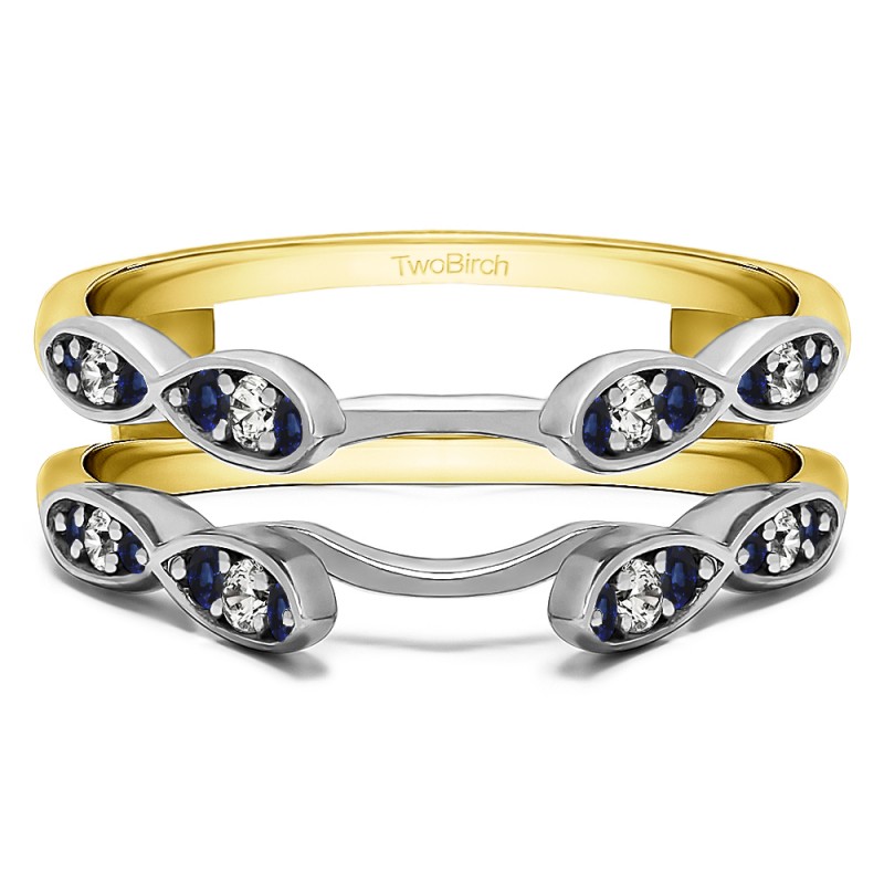 This wedding ring guard has 24 round, channel set stones. Each band measures 2 millimeters wide. This ring guard has 0.32 carats total weight.