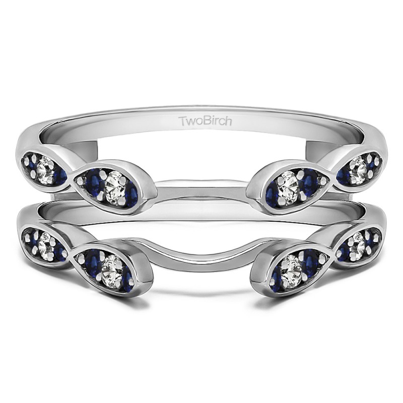 This wedding ring guard has 24 round, channel set stones. Each band measures 2 millimeters wide. This ring guard has 0.32 carats total weight.