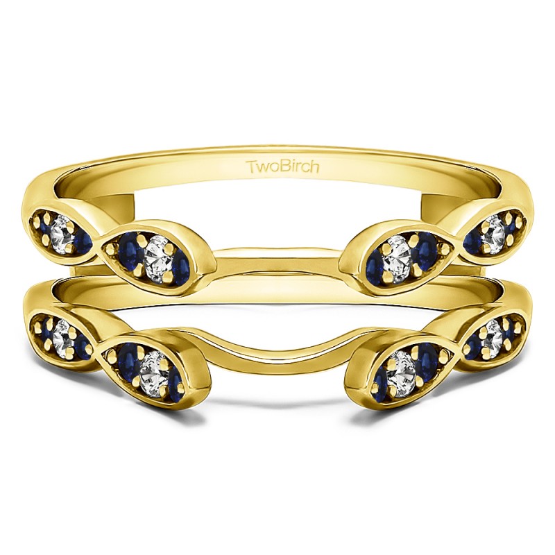 This wedding ring guard has 24 round, channel set stones. Each band measures 2 millimeters wide. This ring guard has 0.32 carats total weight.