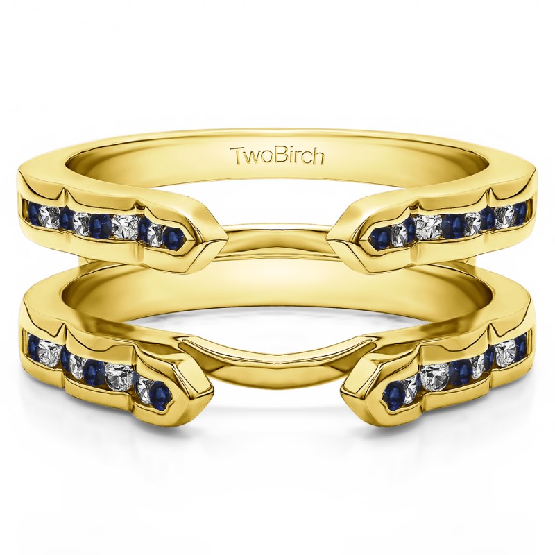 This wedding ring guard has 40 round, channel set stones. Each band measures 2 millimeters wide. This ring guard has 0.4 carats total weight. It is made to fit a round or marquise cut solitaire from 0.5 carats to 2, or a princess cut solitaire from 0.75 up to 2 carats.