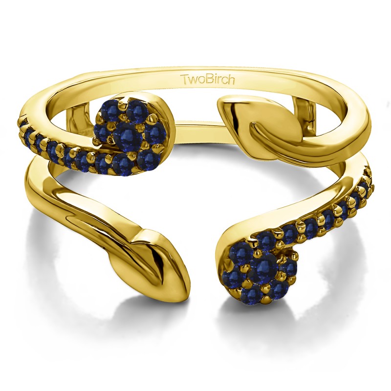 This wedding ring guard has 28 round, prong set stones. Each band measures 1.8 millimeters wide. This ring guard has 0.42 carats total weight. It is made to fit a round, princess or marquise cut solitaire from 0.5 carats to 1 carat.