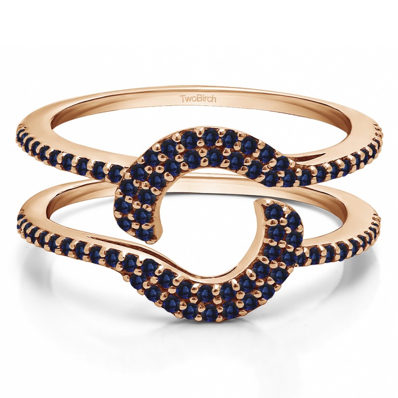 This wedding ring guard has 86 round, prong set stones. Each band measures 2 millimeters wide. This ring guard has 0.44 carats total weight. It is made to fit a round or princess cut solitaire from 0.25 carats to 1.5, or a marquise solitaire from 0.25 up to 0.5 carats.