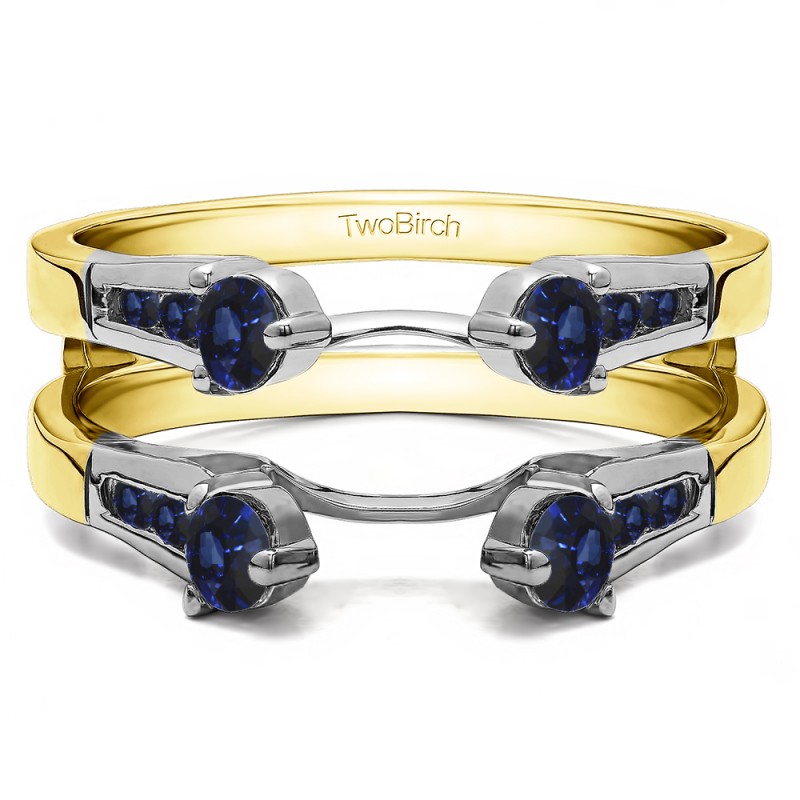 This wedding ring guard has 16 round, bar set stones. Each band measures 2 millimeters wide. This ring guard has 0.75 carats total weight. It is made to fit a round, marquise, or princess cut solitaire from 0.75 carats to 2 carats.