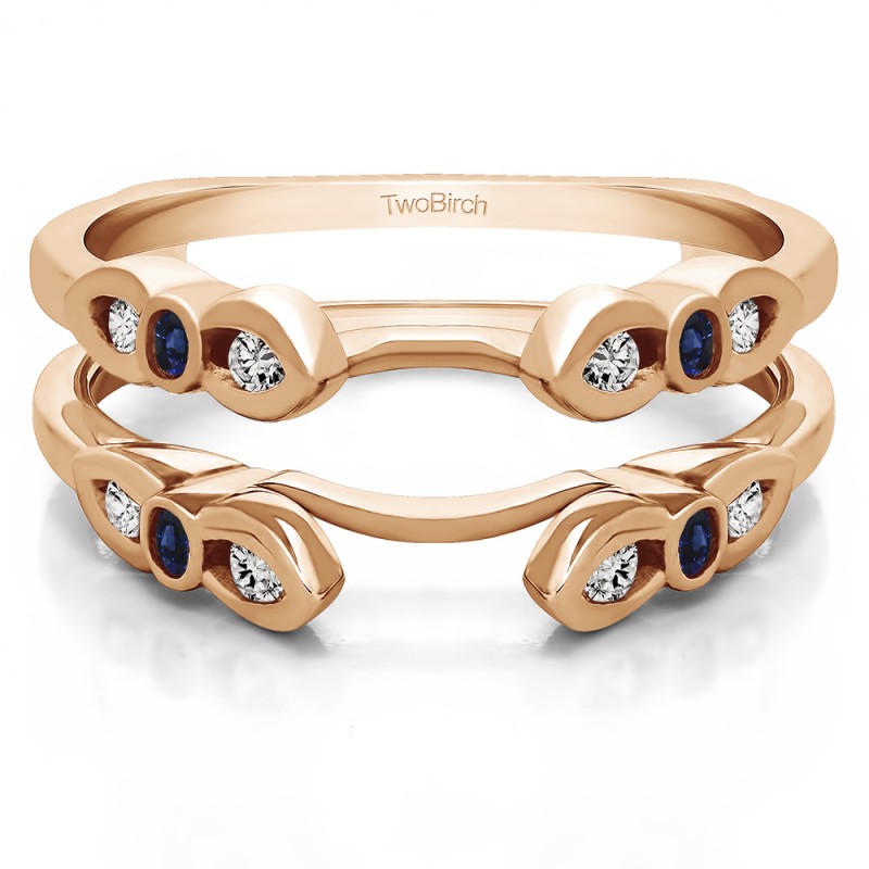 This wedding ring guard has 4 round, prong set stones. Each band measures 1.31 millimeters wide. This ring guard has 0.08 carats total weight. It is made to fit a round solitaire from 0.5 carats to 2, or a princess cut solitaire from 0.5 up to 1, or a marquise solitaire from 0.5 up to 1.5 carats.
