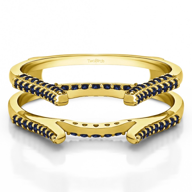 This wedding ring guard has 82 round, prong set stones. Each band measures 1.33 millimeters wide. This ring guard has 0.42 carats total weight. It is made to fit a round solitaire from 0.5 carats to 2, or a princess or marquise cut solitaire from 0.5 up to 1.5 carats.