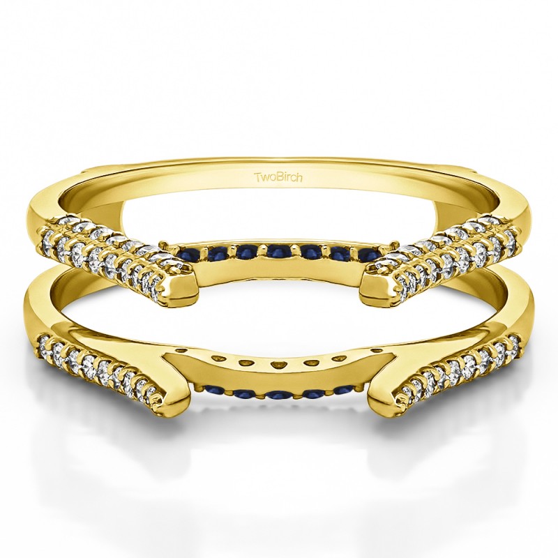 This wedding ring guard has 82 round, prong set stones. Each band measures 1.33 millimeters wide. This ring guard has 0.42 carats total weight. It is made to fit a round solitaire from 0.5 carats to 2, or a princess or marquise cut solitaire from 0.5 up to 1.5 carats.