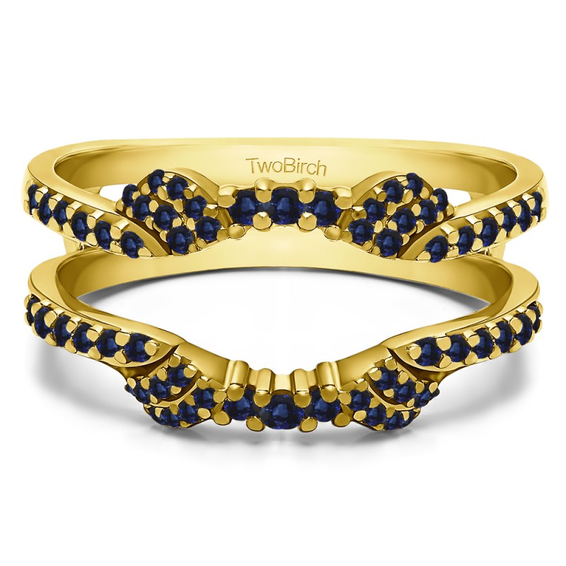 This wedding ring guard has 62 round, prong set stones. Each band measures 1.85 millimeters wide. This ring guard has 0.47 carats total weight. It is made to fit a round solitaire from 0.5 carats to 2, or a princess cut solitaire from 0.25 up to 1.5, or a marquise solitaire from 0.5 up to 1.5 carats.
