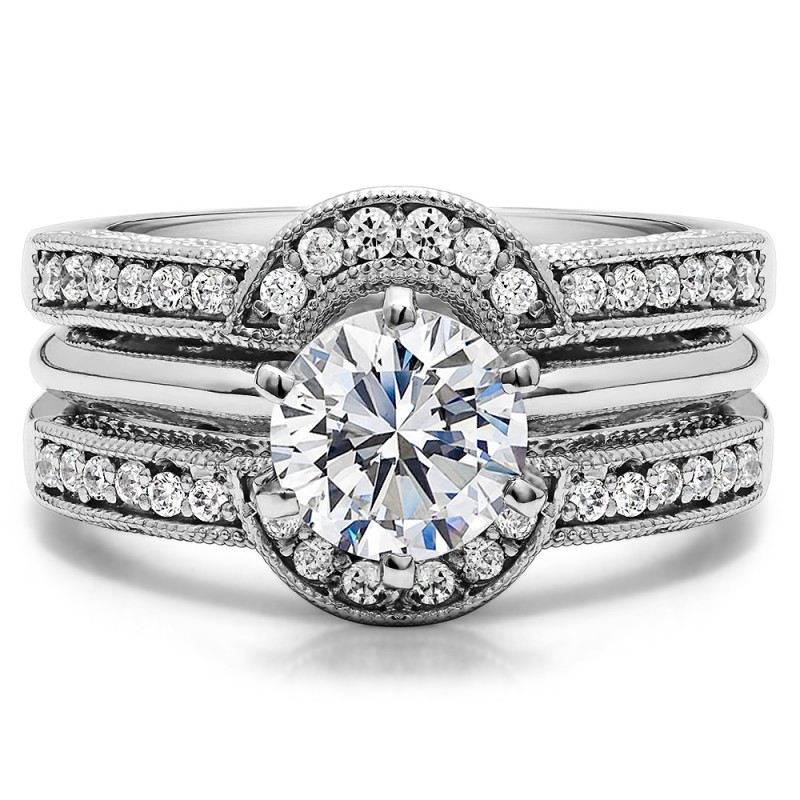 | Key Product Features | See below for which sizes fit this ring guard if you do not select PerfectFit: Round Stone: 0.5 to 1 Carat Mounted in Traditional Solitaire. |