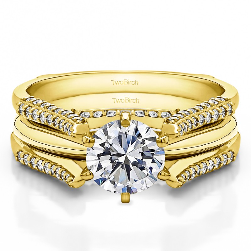 0.42 Ct. Millgrained Cathedral ring guard in Yellow Gold