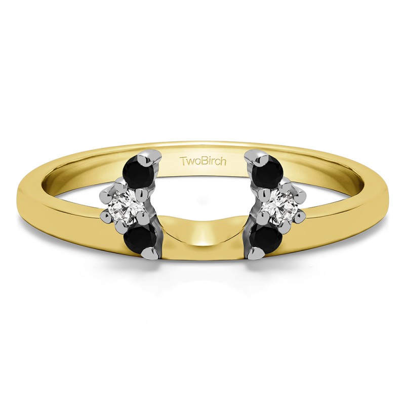 This ring wrap has 6 round, prong set stones with a total combined weight of 0.13 carats. It has a total width of 1.9 millimeters and has three stones on each side of the center that create the look of a halo engagement ring once you add your solitaire. This ring wrap is made to fit a round solitaire from 0.25 carat up to 0.75 carat, or a marquise solitaire from 0.25 carat up to 0.5 carat, or a princess solitaire from 0.5 carat up to 0.75 carat.