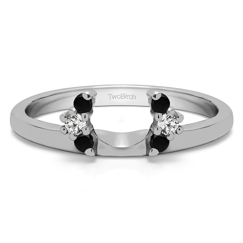 This ring wrap has 6 round, prong set stones with a total combined weight of 0.13 carats. It has a total width of 1.9 millimeters and has three stones on each side of the center that create the look of a halo engagement ring once you add your solitaire. This ring wrap is made to fit a round solitaire from 0.25 carat up to 0.75 carat, or a marquise solitaire from 0.25 carat up to 0.5 carat, or a princess solitaire from 0.5 carat up to 0.75 carat.
