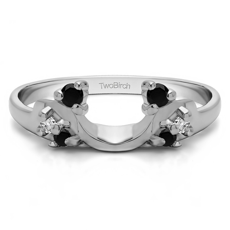 This ring wrap has 6 round, prong set stones with a total combined weight of 0.15 carats. It has a total width of 2.1 millimeters and has a bypass design with a beautiful high polish finish. This ring wrap is made to fit a round solitaire from 0.5 carat up to 0.75 carat, or a marquise solitaire from 0.25 carat up to 0.5 carat, or a princess solitaire from 0.5 carat up to 0.75 carat.