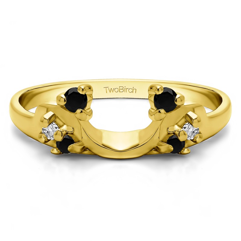 This ring wrap has 6 round, prong set stones with a total combined weight of 0.15 carats. It has a total width of 2.1 millimeters and has a bypass design with a beautiful high polish finish. This ring wrap is made to fit a round solitaire from 0.5 carat up to 0.75 carat, or a marquise solitaire from 0.25 carat up to 0.5 carat, or a princess solitaire from 0.5 carat up to 0.75 carat.