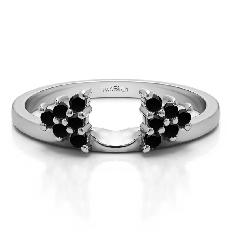 This ring wrap has 12 round, prong set stones with a total combined weight of 0.23 carats. It has a total width of 2 millimeters. The clusters in this ring wrap are shaped like a triangle. This ring wrap is made to fit a round solitaire from 0.5 carat up to 1.5 carat, or a marquise solitaire from 0.25 carat up to 0.5 carat, or a princess solitaire from 0.5 carat up to 1 carat.