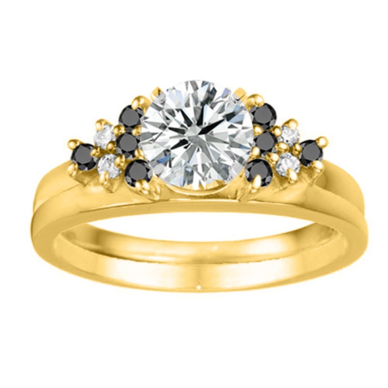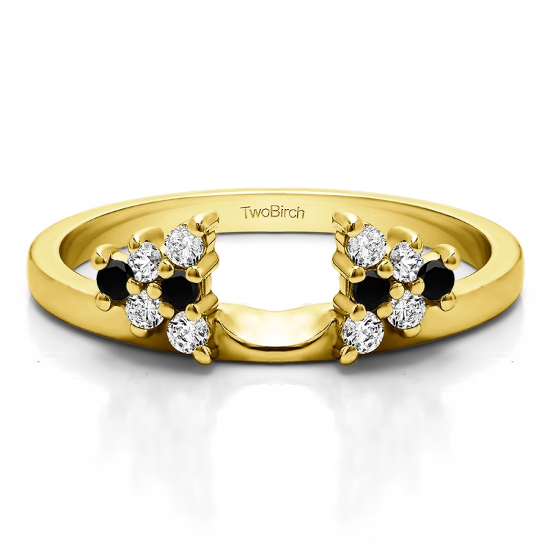 This ring wrap has 12 round, prong set stones with a total combined weight of 0.23 carats. It has a total width of 2 millimeters. The clusters in this ring wrap are shaped like a triangle. This ring wrap is made to fit a round solitaire from 0.5 carat up to 1.5 carat, or a marquise solitaire from 0.25 carat up to 0.5 carat, or a princess solitaire from 0.5 carat up to 1 carat.