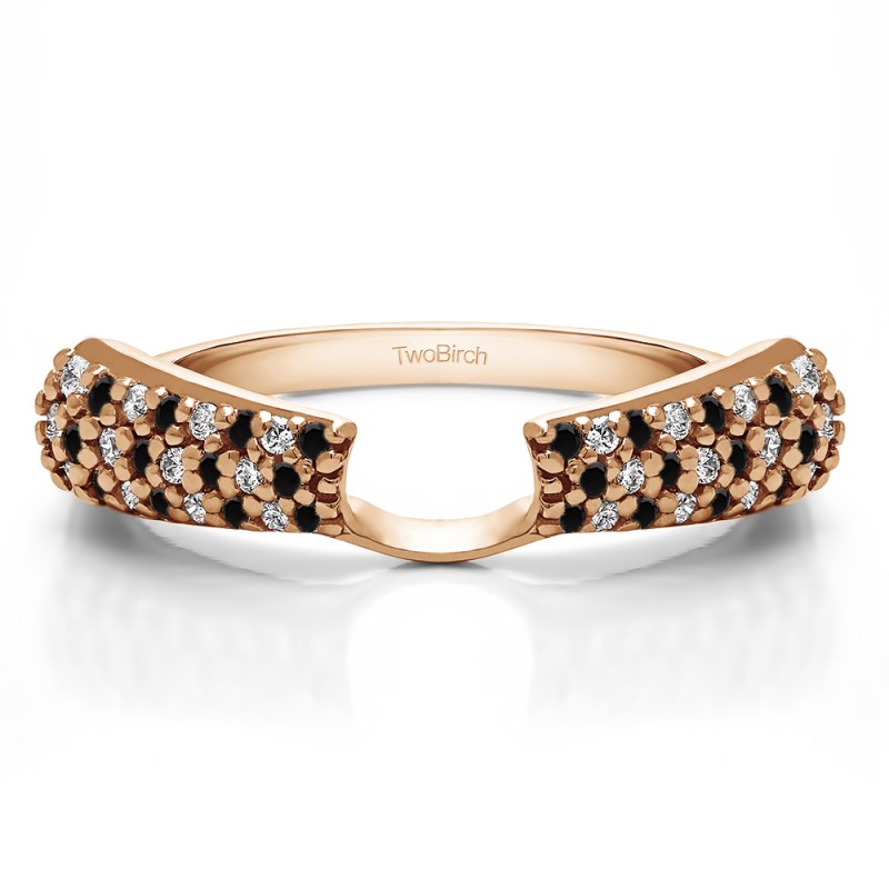 This ring wrap has 48 round, prong set stones with a total combined weight of 0.24 carats. It has a total width of 2 millimeters and features three rows of pave set stones with a stunning high polish finish. This ring wrap is made to fit a round solitaire from 0.25 carat up to 1 carat, or a marquise solitaire from 0.25 carat up to 0.5 carat, or a princess solitaire from 0.3 carat up to 1 carat.