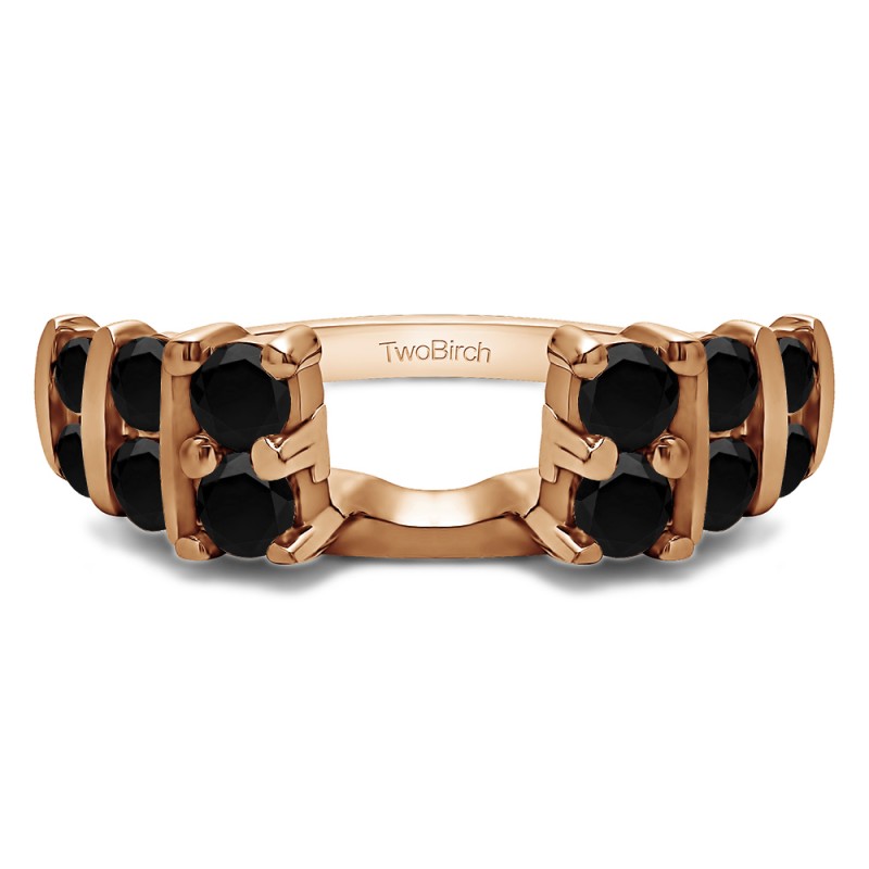 This ring wrap has 12 stones in total. It features a mix of round and round prong set stones with a total combined weight of 0.25 carats. It has a total width of 2 millimeters and has three rows of stones, bar set, and finished with a traditional high polish. This ring wrap is made to fit a round solitaire from 0.5 carat up to 1 carat, or a marquise solitaire from 0.25 carat up to 0.5 carat, or a princess solitaire from 0.5 carat up to 1 carat.