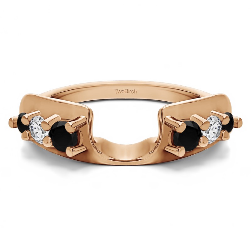 This ring wrap has 6 round, prong set stones with a total combined weight of 0.25 carats. It has a total width of 1.9 millimeters. The stones in the ring wrap jacket are graduated in size. This ring wrap is made to fit a round solitaire from 0.25 carat up to 1 carat, or a marquise solitaire from 0.25 carat up to 0.5 carat, or a princess solitaire from 0.3 carat up to 1 carat.