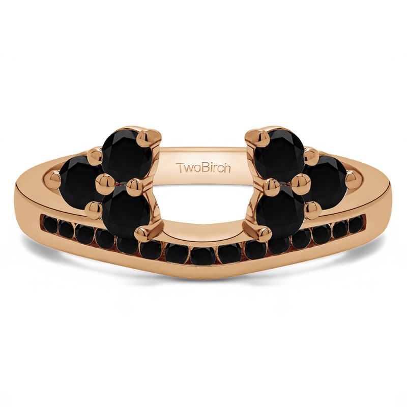 This ring wrap has 21 stones in total. It features a mix of round and round prong set stones with a total combined weight of 0.25 carats. It has a total width of 2 millimeters. It on this anniversary wrap is contoured and channel set with round stones. It also features prong set clusters of round stones with a high polish finish. This ring wrap is made to fit a round solitaire from 0.2 carat up to 0.3 carat, or a marquise solitaire from 0.25 carat up to 0.5 carat, or a princess solitaire from 0.2 carat up to 0.3 carat.