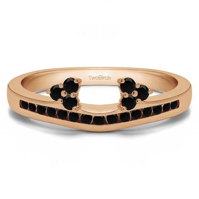 This ring wrap has 21 stones in total. It features a mix of round and round prong set stones with a total combined weight of 0.25 carats. It has a total width of 2 millimeters. It on this anniversary wrap is contoured and channel set with round stones. It also features prong set clusters of round stones with a high polish finish. This ring wrap is made to fit a round solitaire from 0.2 carat up to 0.3 carat, or a marquise solitaire from 0.25 carat up to 0.5 carat, or a princess solitaire from 0.2 carat up to 0.3 carat.