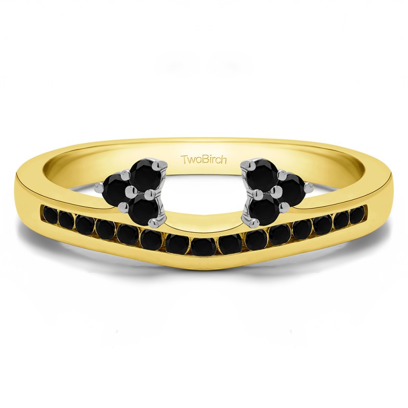 This ring wrap has 21 stones in total. It features a mix of round and round prong set stones with a total combined weight of 0.25 carats. It has a total width of 2 millimeters. It on this anniversary wrap is contoured and channel set with round stones. It also features prong set clusters of round stones with a high polish finish. This ring wrap is made to fit a round solitaire from 0.2 carat up to 0.3 carat, or a marquise solitaire from 0.25 carat up to 0.5 carat, or a princess solitaire from 0.2 carat up to 0.3 carat.