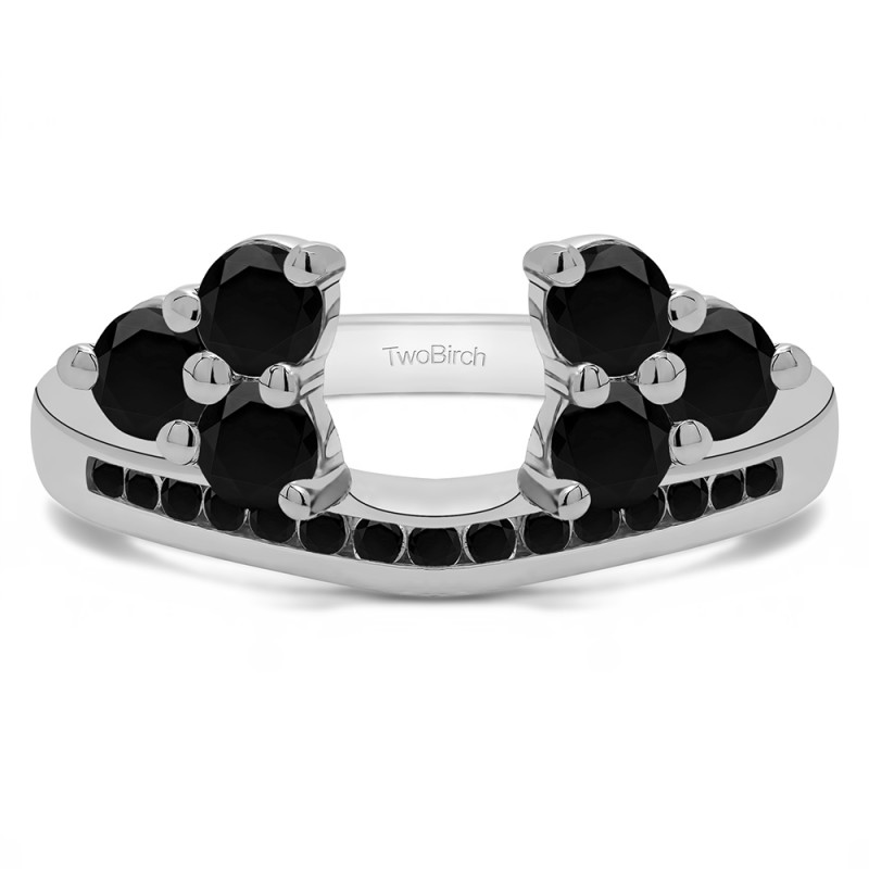 This ring wrap has 21 stones in total. It features a mix of round and round prong set stones with a total combined weight of 0.25 carats. It has a total width of 2 millimeters. It on this anniversary wrap is contoured and channel set with round stones. It also features prong set clusters of round stones with a high polish finish. This ring wrap is made to fit a round solitaire from 0.2 carat up to 0.3 carat, or a marquise solitaire from 0.25 carat up to 0.5 carat, or a princess solitaire from 0.2 carat up to 0.3 carat.