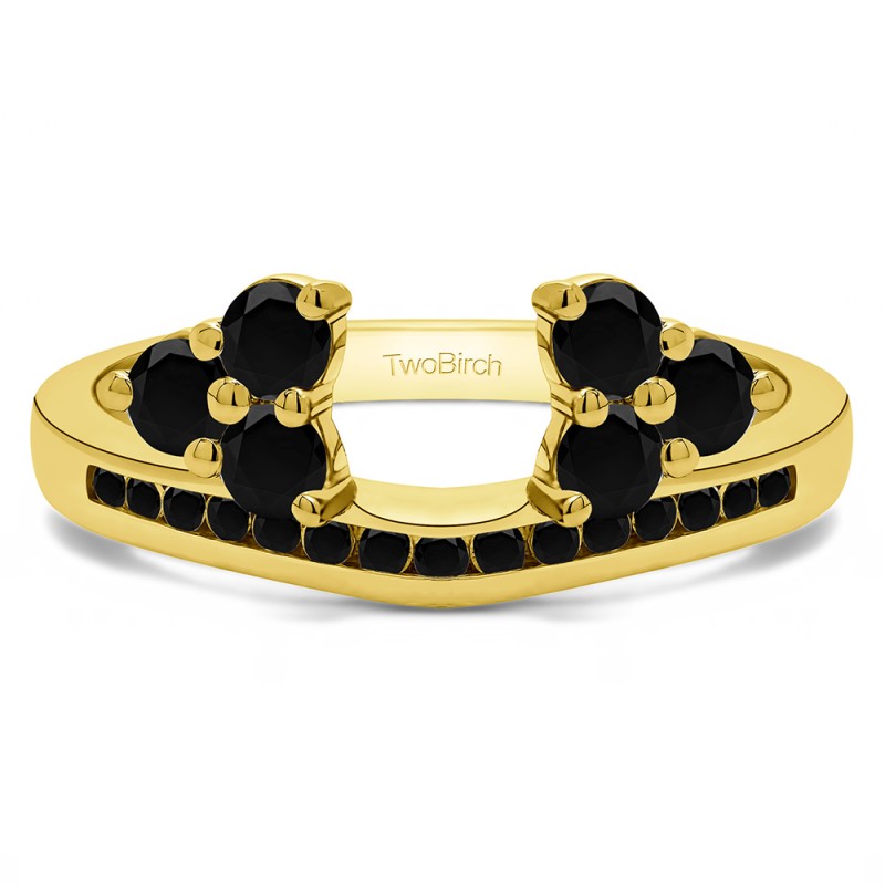 This ring wrap has 21 stones in total. It features a mix of round and round prong set stones with a total combined weight of 0.25 carats. It has a total width of 2 millimeters. It on this anniversary wrap is contoured and channel set with round stones. It also features prong set clusters of round stones with a high polish finish. This ring wrap is made to fit a round solitaire from 0.2 carat up to 0.3 carat, or a marquise solitaire from 0.25 carat up to 0.5 carat, or a princess solitaire from 0.2 carat up to 0.3 carat.