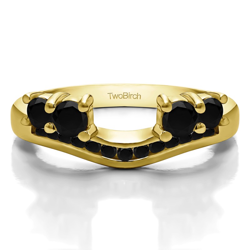 This ring wrap has 17 stones in total. It features a mix of round and round prong set stones with a total combined weight of 0.34 carats. It has a total width of 2 millimeters and features a row of round channel set stones on the band and four round prong set stones. Once you add your solitaire, it will create the look of an engagement ring with a matching channel set band. This ring wrap is made to fit a round solitaire from 0.3 carat up to 2 carat, or a marquise solitaire from 0.25 carat up to 0.5 carat, or a princess solitaire from 0.25 carat up to 0.5 carat.
