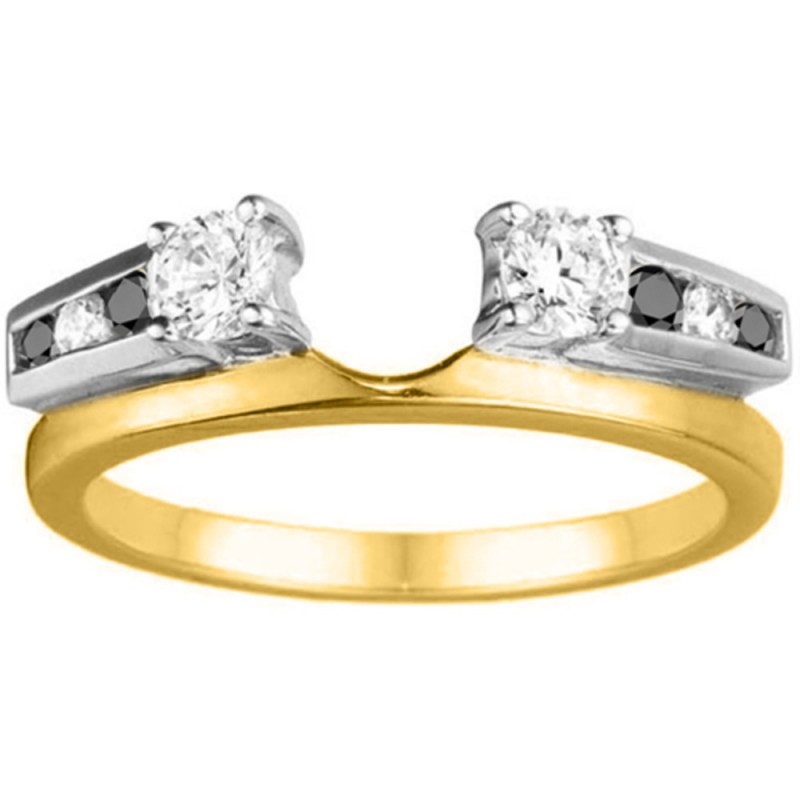 This ring wrap has 8 stones in total. It features a mix of round and round prong set stones with a total combined weight of 0.4 carats. It has a total width of 1.9 millimeters and has a traditional high polish finish. This ring wrap is made to fit a round solitaire from 0.5 carat up to 1 carat, or a marquise solitaire from 0.25 carat up to 0.5 carat, or a princess solitaire from 0.5 carat up to 1 carat.
