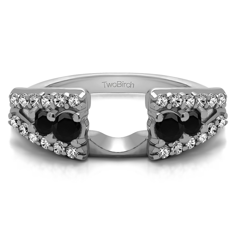 This ring wrap has 28 round, prong set stones with a total combined weight of 0.44 carats. It has a total width of 2 millimeters and features a classic high polish finish. This ring wrap is made to fit a round solitaire from 0.25 carat up to 1 carat, or a marquise solitaire from 0.25 carat up to 0.5 carat, or a princess solitaire from 0.3 carat up to 1 carat.