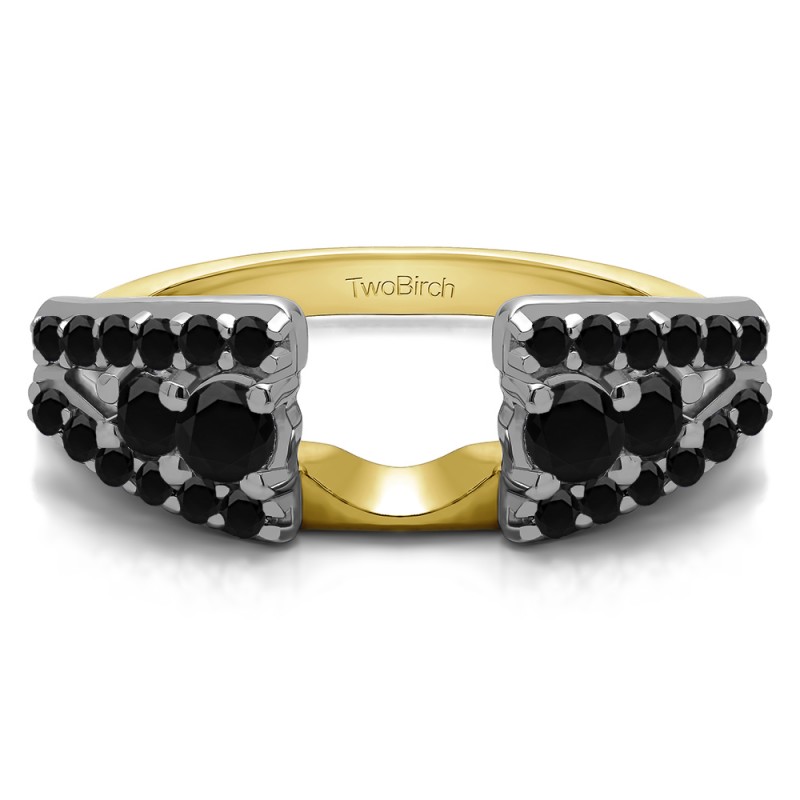 This ring wrap has 28 round, prong set stones with a total combined weight of 0.44 carats. It has a total width of 2 millimeters and features a classic high polish finish. This ring wrap is made to fit a round solitaire from 0.25 carat up to 1 carat, or a marquise solitaire from 0.25 carat up to 0.5 carat, or a princess solitaire from 0.3 carat up to 1 carat.