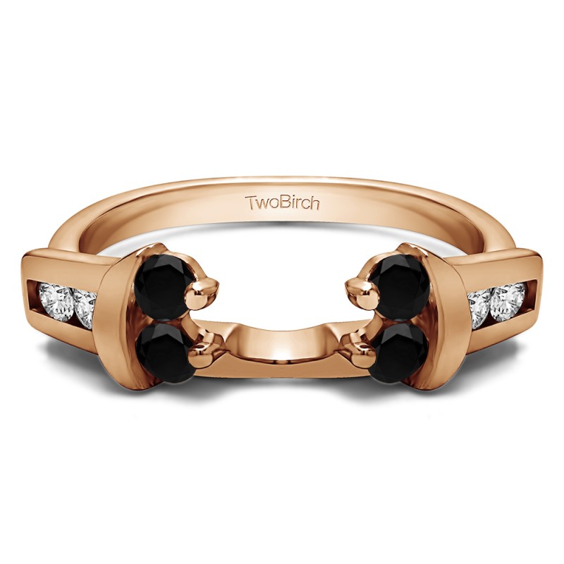 This ring wrap has 8 stones in total. It features a mix of round and round prong set stones with a total combined weight of 0.48 carats. It has a total width of 2 millimeters and has two rows of stone set in channels and prongs, perpendicular to each other. This ring wrap is made to fit a round solitaire from 0.25 carat up to 0.5 carat, or a marquise solitaire from 0.5 carat up to 0.75 carat, or a princess solitaire from 0.5 carat up to 0.75 carat.