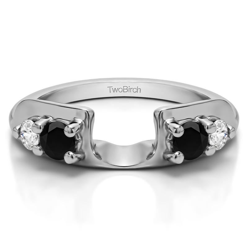 This ring wrap has 4 round, prong set stones with a total combined weight of 0.48 carats. It has a total width of 2 millimeters. The stones in the ring wrap jacket are graduated in size. This ring wrap is made to fit a round solitaire from 0.25 carat up to 1 carat, or a marquise solitaire from 0.25 carat up to 0.5 carat, or a princess solitaire from 0.3 carat up to 1 carat.