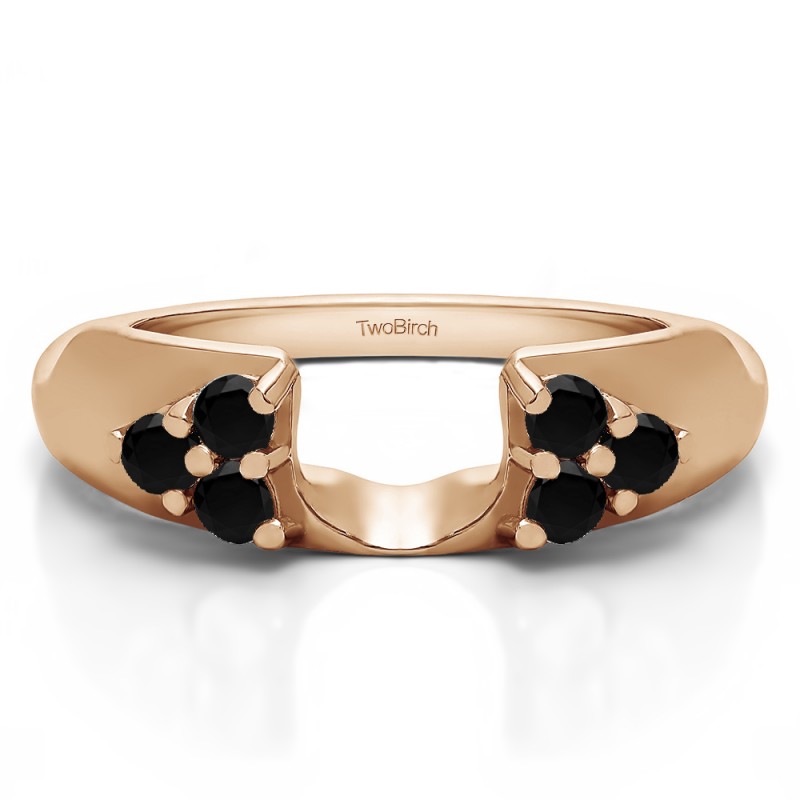 This ring wrap has 6 round, prong set stones with a total combined weight of 0.48 carats. It has a total width of 2 millimeters and has two clusters of round stones. This ring wrap is made to fit a round solitaire from 0.25 carat up to 1 carat, or a marquise solitaire from 0.25 carat up to 0.5 carat, or a princess solitaire from 0.3 carat up to 1 carat.