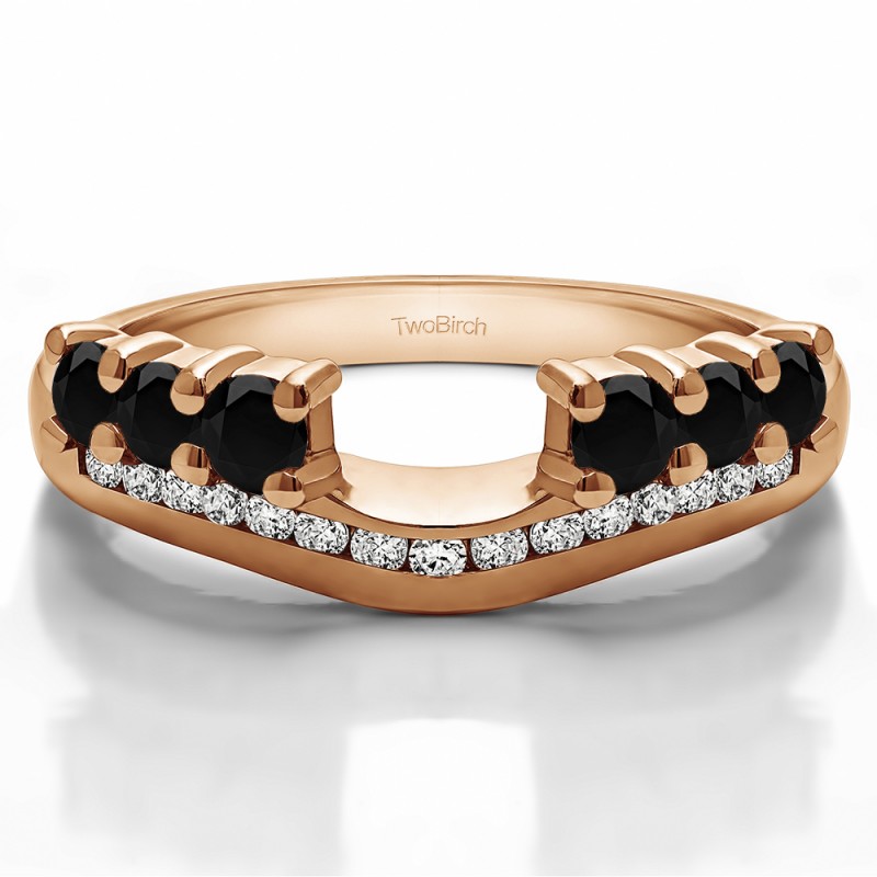 This ring wrap has 21 stones in total. It features a mix of round and round prong set stones with a total combined weight of 0.49 carats. It has a total width of 2 millimeters and features a row of round channel set stones on the band and six round prong set stones. Once you add your solitaire, it will create the look of an engagement ring with a matching channel set band. This ring wrap is made to fit a round solitaire from 0.25 carat up to 1 carat, or a marquise solitaire from 0.25 carat up to 0.5 carat, or a princess solitaire from 0.3 carat up to 1 carat.