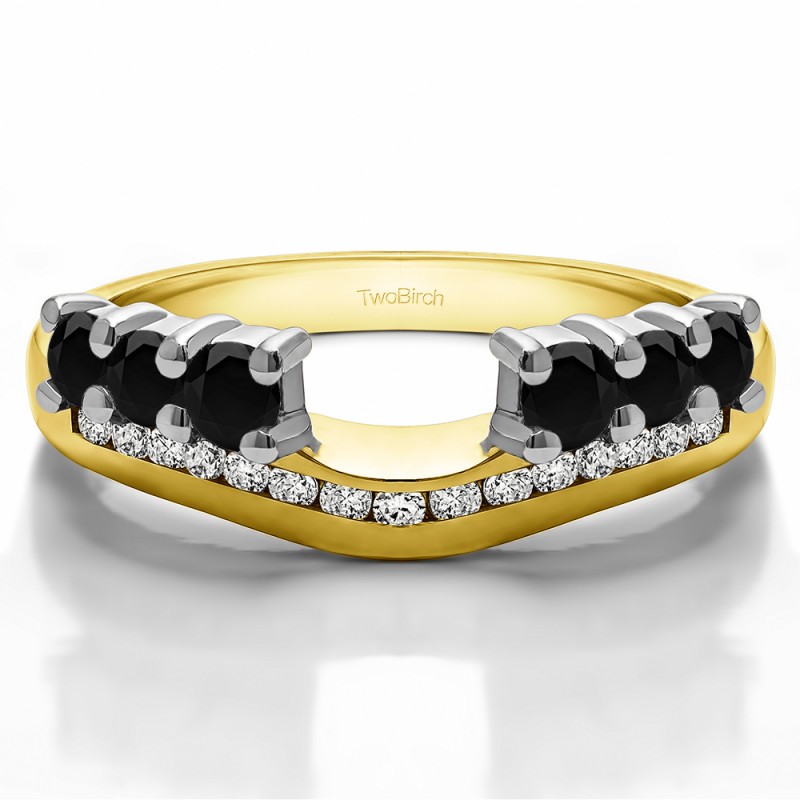 This ring wrap has 21 stones in total. It features a mix of round and round prong set stones with a total combined weight of 0.49 carats. It has a total width of 2 millimeters and features a row of round channel set stones on the band and six round prong set stones. Once you add your solitaire, it will create the look of an engagement ring with a matching channel set band. This ring wrap is made to fit a round solitaire from 0.25 carat up to 1 carat, or a marquise solitaire from 0.25 carat up to 0.5 carat, or a princess solitaire from 0.3 carat up to 1 carat.