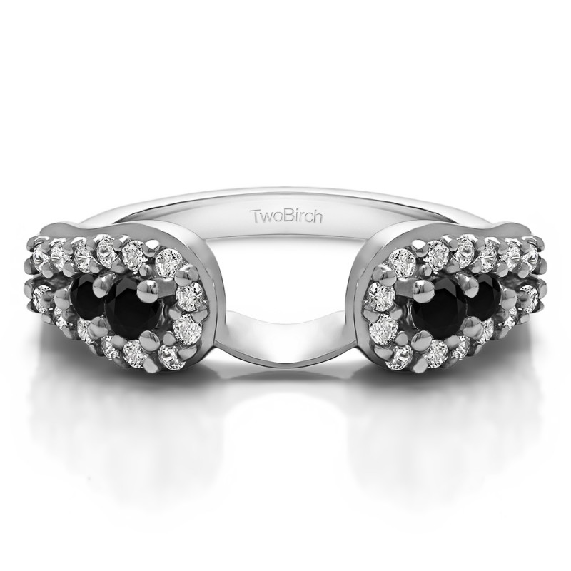 This ring wrap has 32 round, prong set stones with a total combined weight of 0.49 carats. It has a total width of 1.9 millimeters and features a stunning fishtail design with prong set stones in the center. This ring wrap is made to fit a round solitaire from 0.25 carat up to 1 carat, or a marquise solitaire from 0.25 carat up to 0.5 carat, or a princess solitaire from 0.3 carat up to 1 carat.