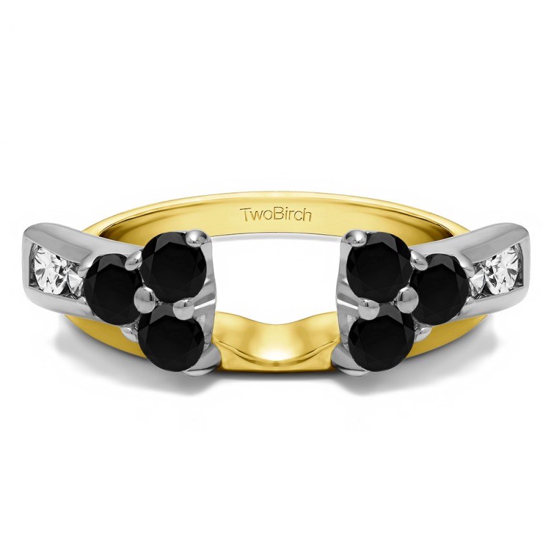 This ring wrap has 10 stones in total. It features a mix of round and round prong set stones with a total combined weight of 0.5 carats. It has a total width of 2.1 millimeters and features a prong set cluster accented with round channel set stones. This ring wrap is made to fit a round solitaire from 0.5 carat up to 0.75 carat, or a marquise solitaire from 0.25 carat up to 0.5 carat, or a princess solitaire from 0.5 carat up to 0.75 carat.
